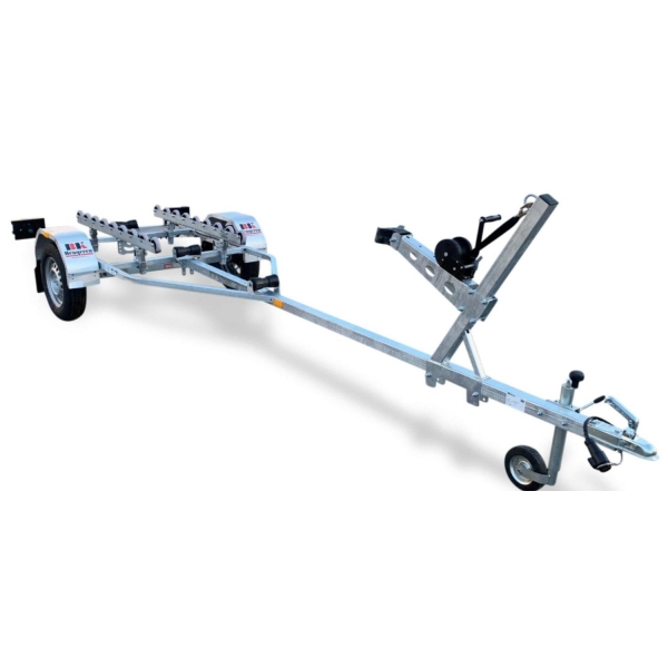 Båthengeren er designet for rotasjonsstøpte båter og har skinner som gir optimal støtte og beskytter båten under transport. Hengeren er utstyrt med svingbare bak lamper for enkel sjøsetting