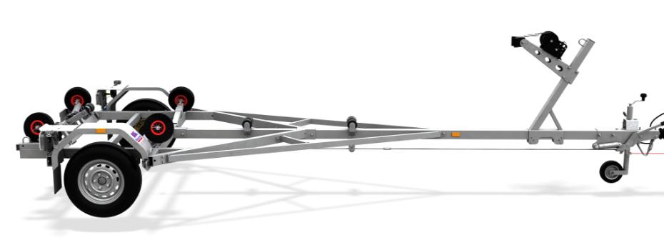 Båthenger med selvjusterende vugge bak og manuelt justerbare støtter i front for maksimal støtte av båten. Rammen er helsveist og varmgalvanisert. Stålskjermer som tåler 200 kg gjør det enkelt og komme seg opp i båten når den er på land. Sveiste surrefester for god stropping av båt under transport. Høytmonterte lykter som ikke skal tas av ved sjøsetting. Ekstra lang vugge er ekstrautstyr og denne er beregnet for båter med forkortet kjøl.