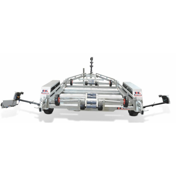 Henger med dobbel ramme og to selvjusterende tippvugger. Helsveiset og varmgalvanisert. 260mm kompakte sideruller. Kraftig vinsj med bånd. Kjølruller med stålkjerne. Supervugge med 16 sidehjul på 310mm kan leveres som ekstrautstyr. ( Samme som er på bildet av P3526B) Avtakbare baklykter.