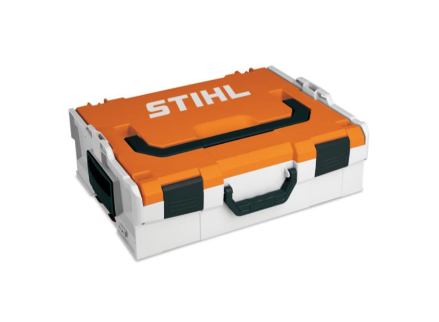 Med STIHL batteriboks kan du sikkert og plassbesparende transportere eller oppbevare enten fire batterier eller to batterier og én lader. STIHL batteriboks er dessuten kompatibelt med Sortimo L-BOXX og kjøresystemet Sortimo Globelyst.