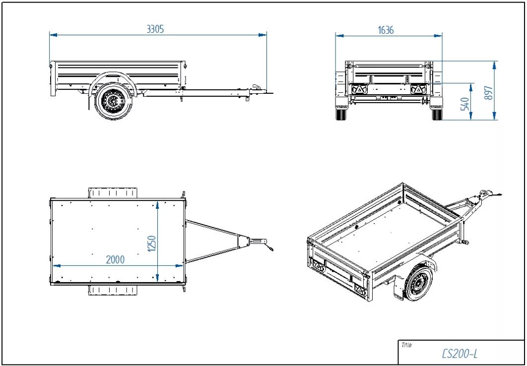 En flott henger med kassemål 200x125cm. Tillatt totalvekt 750kg, uten brems. For og baklem er avtagbare og skjermene er av stål. Hengeren er utstyrt med tipp, og bladfjærer, den er praktisk i bruk og har ekstra komfort ved kjøring. Det er et stort utvalg med ekstra utstyr til hengeren, som ekstra forhøyningskarmer (30 og 60cm), presenning, nettinggrind og plastlokk. Hengeren er laget av stål fra Finland, og beskyttet av finskprodusert HDG galvanisering, for nordiske forhold. Holdbarheten er garantert av Tyske Knott akslinger, vannavvisende hjullagre. Lyktene og det elektriske systemet er fra den Østeriske produsenten Aspöck som gjør de værbestandige. Hengerne er utstyrt med finsk, vanntett kryssfiner med anti-skli overflate. Til sammen gjør dette CS-hengerne fra Tiki Tilhenger til mest for pengene.