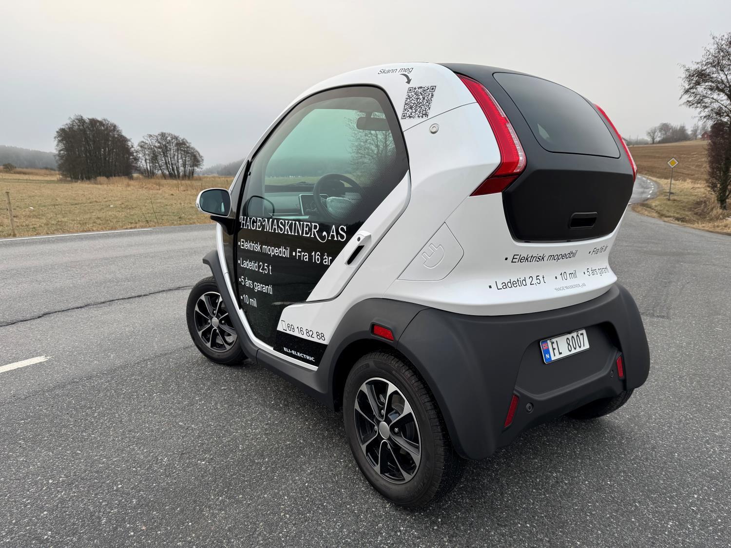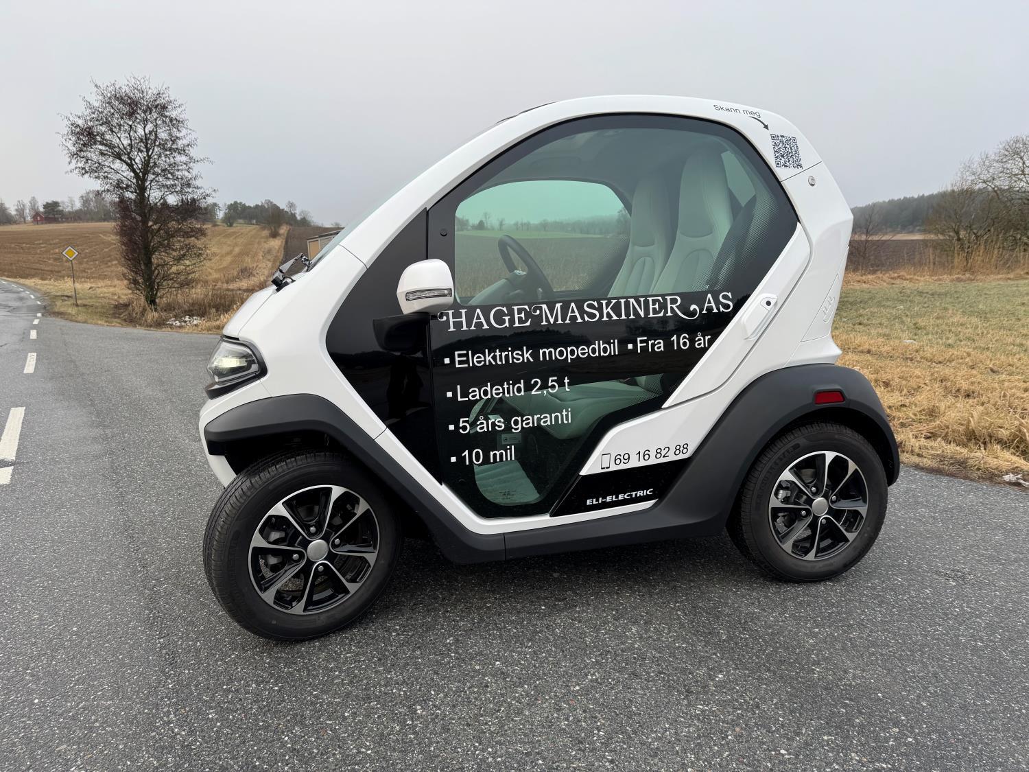 Eli ZERO er en elektrisk mopedbil som er forut for sin tid. Med servo, servo-brems, soft close dører, led lys, stereo og mange andre premium funksjoner. Eli ZERO er bygget fra grunnen av for å levere maks energieffektivitet og pålitelig driftssikkerhet. Bilen har batterivarmesystem som gjør det enkelt å lade når det er kaldt ute. Tross liten fysisk størrelse føles bilen romslig og oversiktlig. Selv om bilen har et unikt design med glasstak og glassdører er den trygg og sikker med aluminium chassis og aluminium stolper. Bilen er perfekt for pendling til og fra skole, trening og til venner. Litium batteriet på 8 kWh lades enkelt i vanlig stikkontakt eller type 2 vegglader. Ladetiden fra null til full er kun 2,5 timer. Ved fulladet bil er rekkevidden ca. 10 mil.