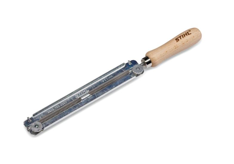 Rundfil med trehåndtak til sliping av ryddesagblad / sirkelsagblad med meiselformet tann