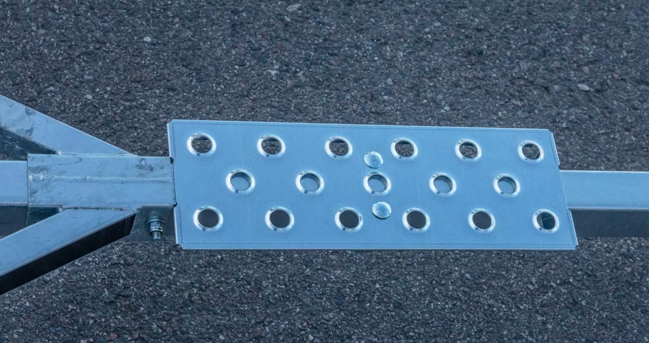 Gangbrosett med fester L=500mm. Passer for montering på rør med en diameter på 60x60mm. Kompatibel med Tiki BX750 båttrailere. Feste til draget.