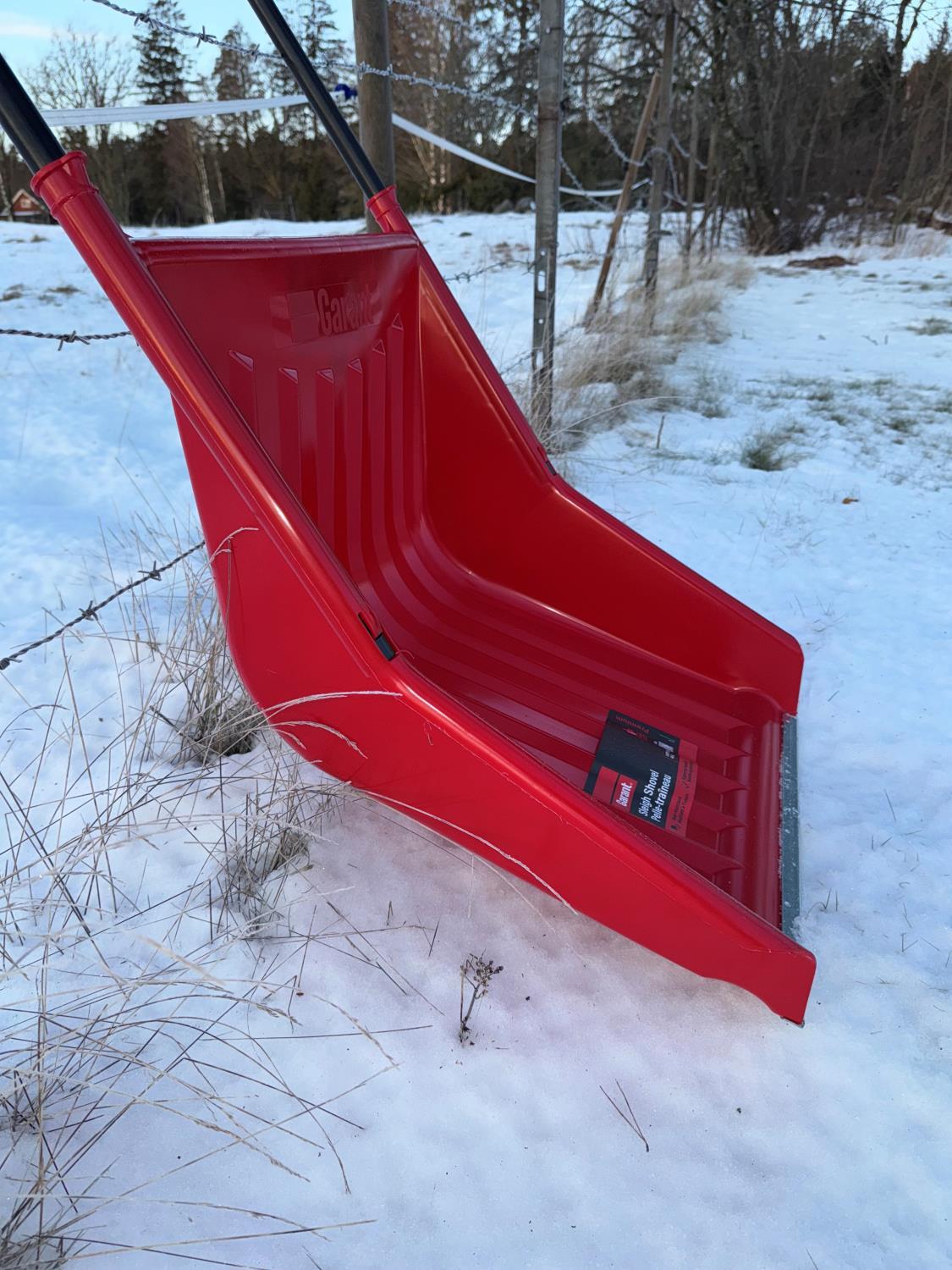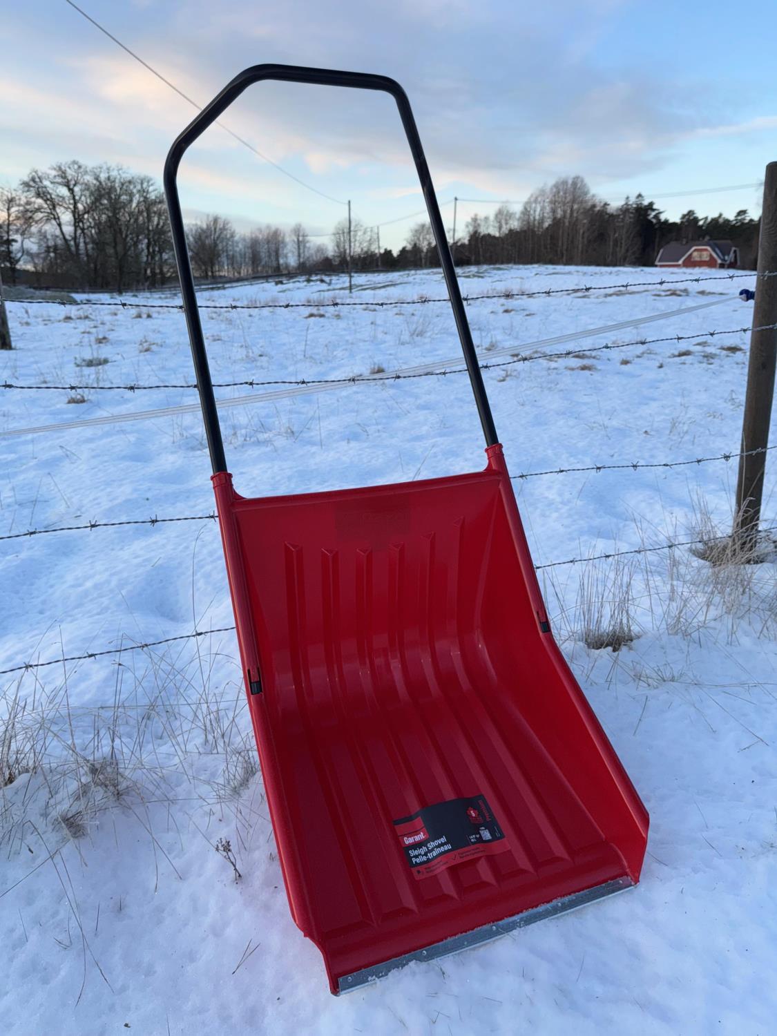 Praktisk snøbrett med god høyde i bakkant for å få med mer snø.