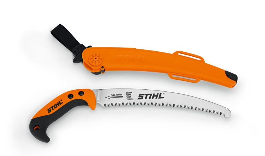 Grensag med 3-sidet japanske sagtanning i impulsherdet, forkrommet stål og med bøyd sagblad. Det buede sagbladet gir skånsom saging blant annet ved trepleie. 33 cm blad for grener opptil Ø 150 mm.