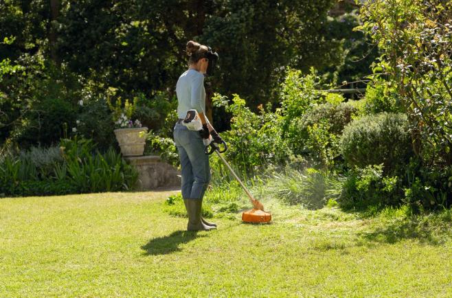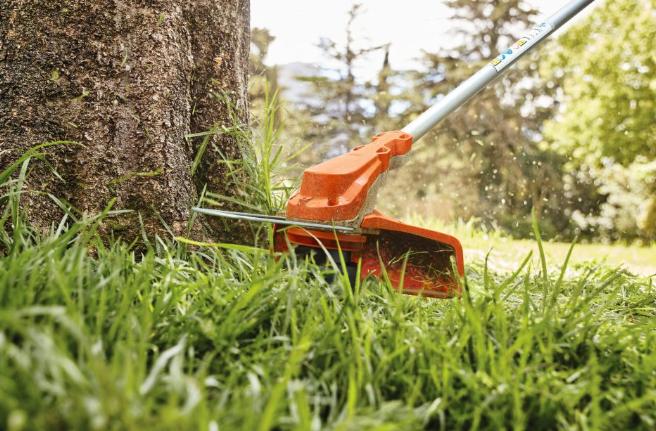 Batteridrevet trimmer i moderne design, for pleie av plen og plenkanter. Klippediameter 350 mm. Med ergonomisk rundhåndtak med trinnløs hastighetskontroll og robust aluminiumsskaft. Avstandsbøyle for klipping rundt hindringer som trær og busker. Leveres med trimmerhodet AutoCut C 6-2, men kan også brukes med trimmerhode PolyCut 6-2 med plastkniver.