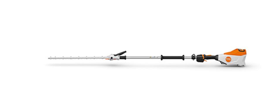 Den kraftigste batteridrevne langskaftede hekksaksen i STIHL sortimentet, utviklet for profesjonell bruk i støyfølsomme områder. Til trimming og klipping av busker og vekster over hodehøyde, i sidehøyde og nær bakken. Knivbjelken kan justeres 145 ° uten bruk av verktøy. Dobbeltsidig slipte kniver gir rene kutt. Intuitivt betjeningshåndtak med LED-visning. HLA 135 K er klargjort for STIHL Smart Connector 2 A i motorhuset. Totallengde 219 cm.