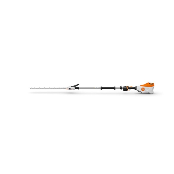 Den kraftigste batteridrevne langskaftede hekksaksen i STIHL sortimentet, utviklet for profesjonell bruk i støyfølsomme områder. Til trimming og klipping av busker og vekster over hodehøyde, i sidehøyde og nær bakken. Knivbjelken kan justeres 145 ° uten bruk av verktøy. Dobbeltsidig slipte kniver gir rene kutt. Intuitivt betjeningshåndtak med LED-visning. HLA 135 K er klargjort for STIHL Smart Connector 2 A i motorhuset. Totallengde 219 cm.