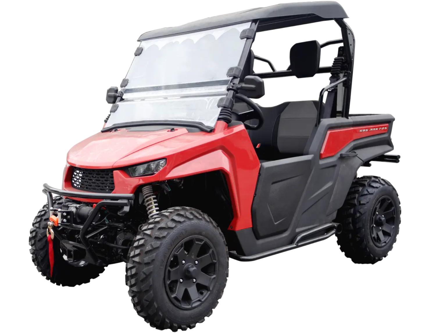 Tak og frontrute beskytter mot elementene. Lave sidedører gir enkel inn- og utstigning. Går turen over stokk og stein, har 595 Arktos gassdempere som gir mindre belastning på kroppen ved kjøring.595 Arktos leveres i 4 farger; Rød, Blå, Grønn og Grå.