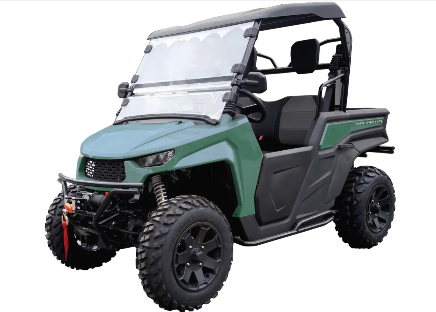 Tak og frontrute beskytter mot elementene. Lave sidedører gir enkel inn- og utstigning. Går turen over stokk og stein, har 595 Arktos gassdempere som gir mindre belastning på kroppen ved kjøring.595 Arktos leveres i 4 farger; Rød, Blå, Grønn og Grå.