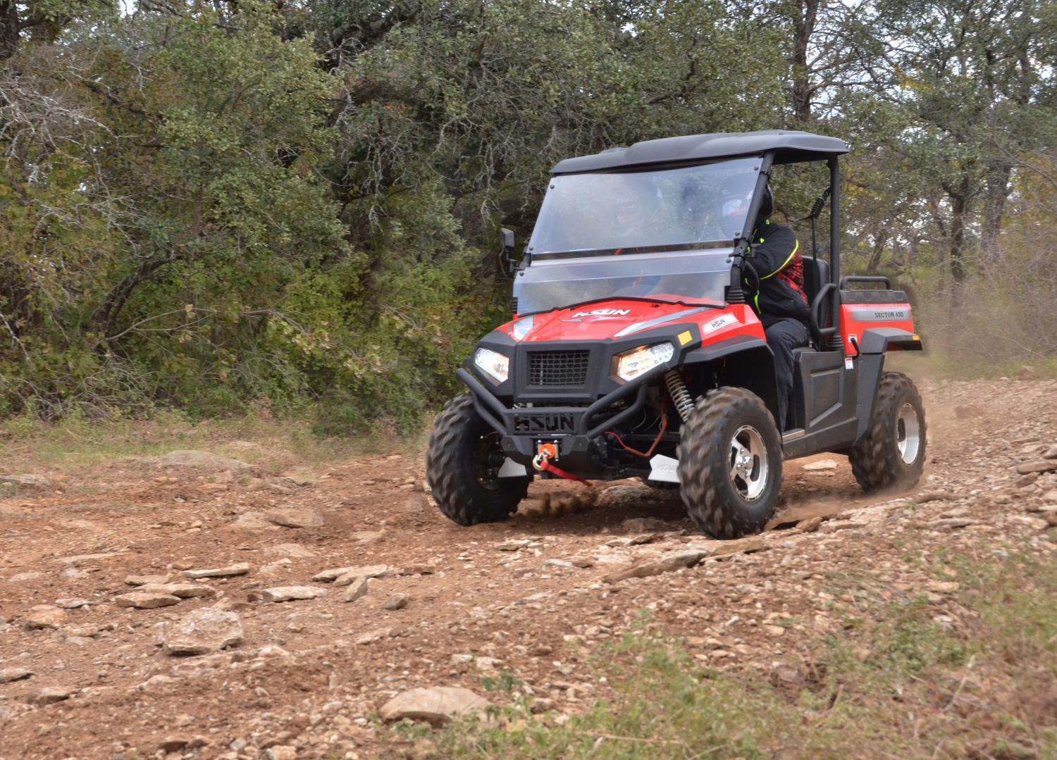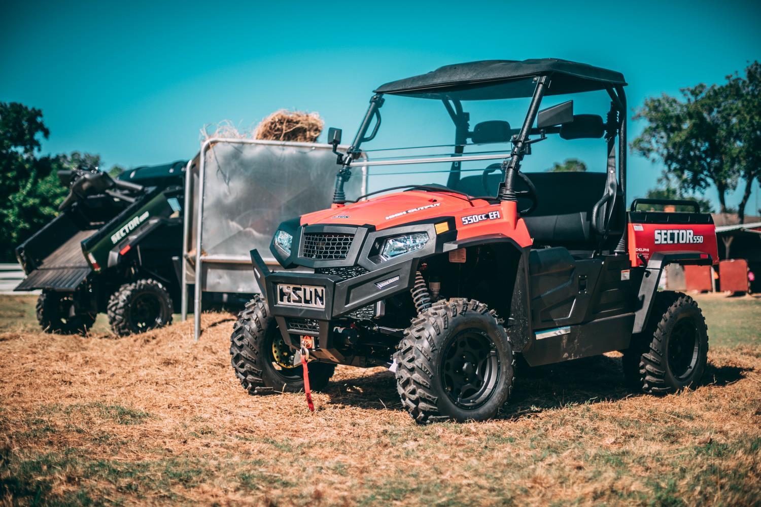 Hisun HS590 er en virkelig arbeidshest med et stort plan som også kan tippes! Solide sidedører beskytter mot vær og vind. Den har 2500 lbs vinsj, servostyring, 12” lettmetallfelger, tilhengerfeste og sikkerhetsbelter. Maskinen er stabil og lett å kjøre. Den går mykt og fint både på og utenfor veien. UTV – Utility Terrain Vehicle – er en videreutvikling av ATV. Mange som har en UTV setter pris på å kunne ta med seg familie og venner når de er ute og farter. Først og fremst er det fortsatt en god og pålitelig arbeidskollega! Arbeidet går raskt og enkelt når man f.eks. skal ut i skogen eller bringe fôr til dyrene. Uansett hvilken modell du velger, får du mye maskin og utstyr for pengene. Både rattet og de komfortable setene kan justeres ut i fra førerens lengde for å gi den beste komfort. Alle maskinene har CVT automatgir. Alle UTV-modellene er traktorregistrerte og har 3 års garanti. Tilbehør som vinsj, slepekrok, snøplog og tilhenger gjør at du få ekstra mye ut av maskinen i det daglige arbeidet. HS5590 UTV T3B = 60 km/t -2 personer – føres av personer med bilsertifikat