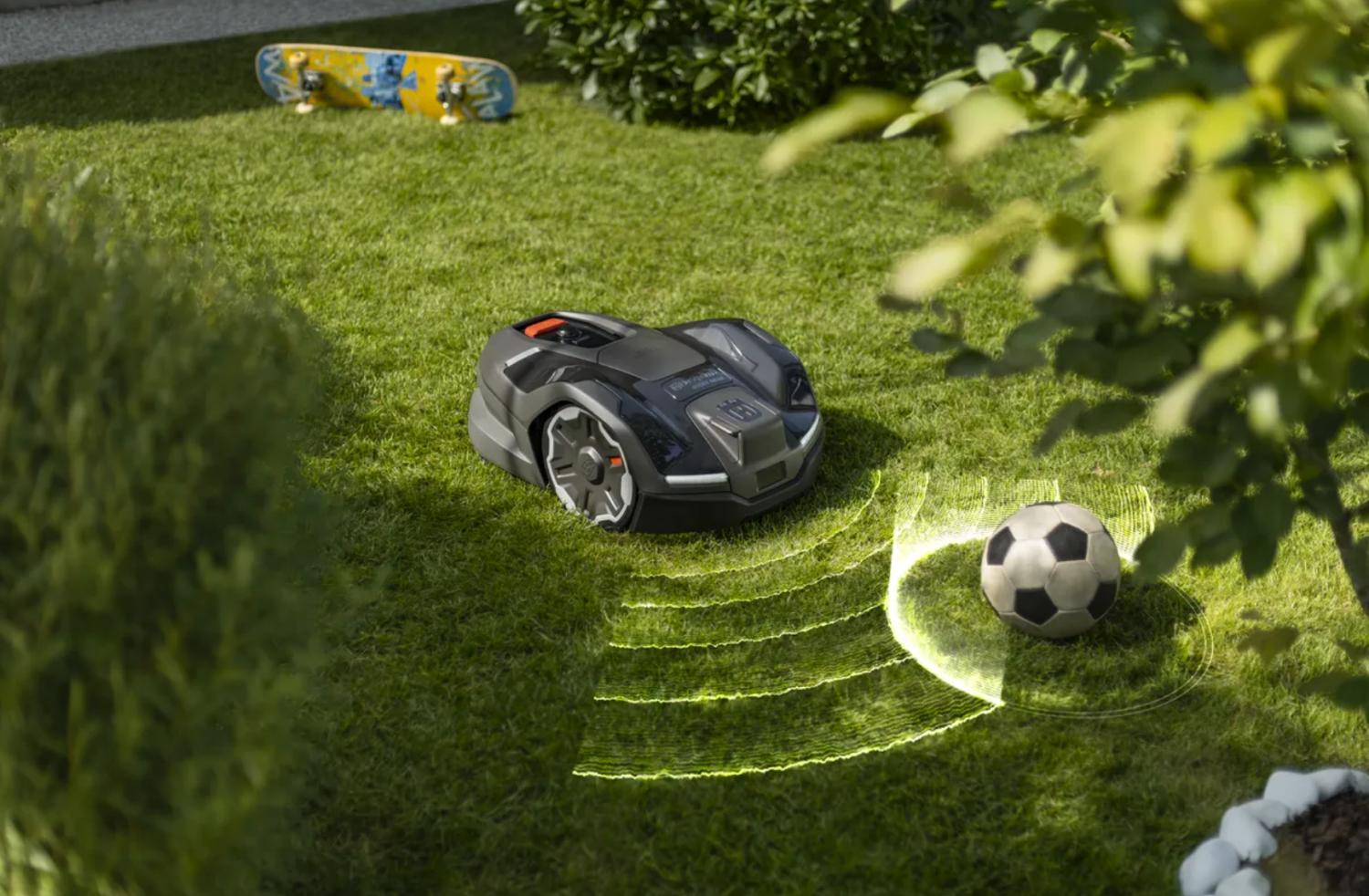 Robotgressklipper som trimmer kantene og unngår gjenstander på plenen