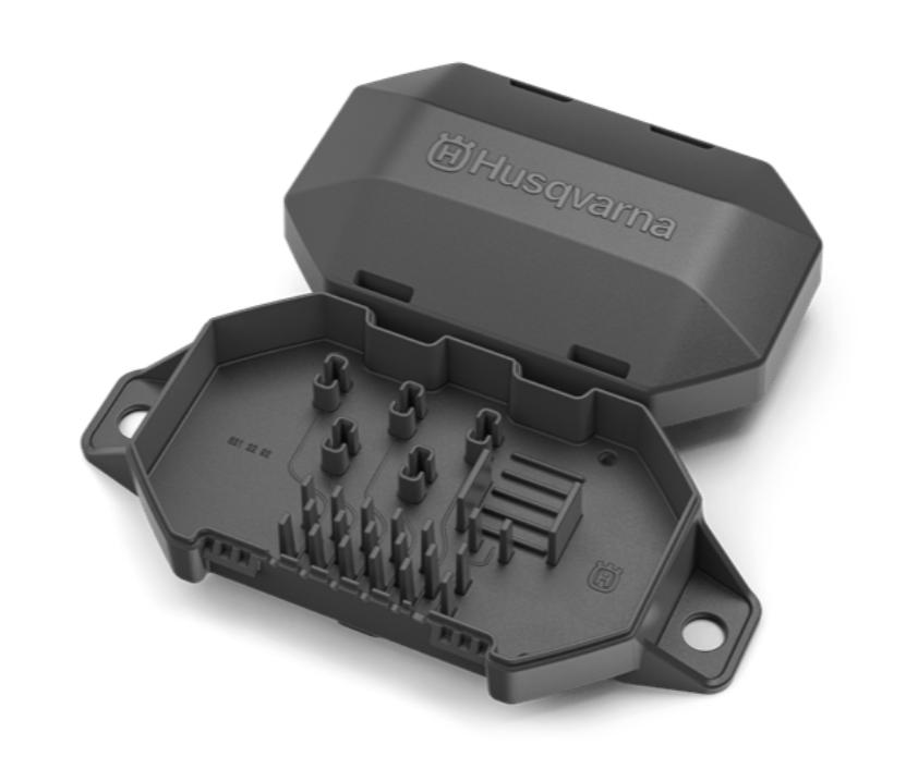 I vintersongen er det betryggende å vite at installasjonstilbehøret til robotgressklipperen er beskyttet mot vær og vind. Denne forseglede Automower Connector Protection Box fra Husqvarna er designet for å trygt lagre koblinger, enden til ledning og ankerskruer, og beskytte dem mot fuktighet, regn, is og snø. Det å enkelt kunne lagre opptil 5 ledninger hjelper også med å holde plenen ryddig uten løse ender