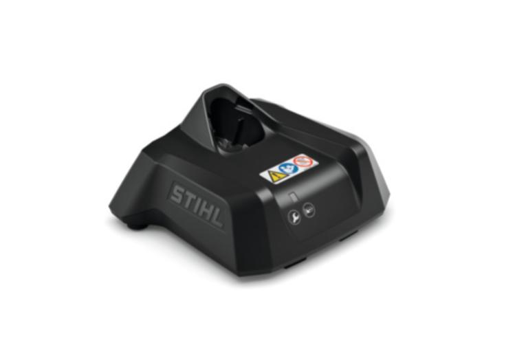 Kompatibel med STIHL AS 2-batterier. Med visning av ladestatus (LED blinkemønster), kabeloppspoling med borrelås samt feste for veggmontering.