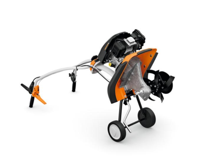 STIHL MH 445 R bensindrevet jordhakke er optimal for oppgaver i din egen hage eller små områder i landbruket. På smale flater og til å forberede bed for vinteren, er det ofte nødvendig å kjøre jordhakken frem og tilbake flere ganger. For å gjøre arbeidet enklere og spare energi er STIHL MH 445 R jordhakke utstyrt med revers. Det gjør det lettere å løsne jorda i hagen, spesielt ved lengre arbeidsskift. Med en kraftig bensindrevet OHV-motor jobber du raskt og effektivt. Ved behov kan arbeidsbredden enkelt reduseres fra 45 cm til 25 cm. Jordhakken har et kompakt design og er meget godt balansert. Sentral høydejustering gjør at styret kan justeres etter behov. STIHL antivibrasjonssystem minimerer vibrasjoner i håndtaket. Ved hjelp av tilbehøret STIHL AHV 600 økes arbeidsbredden til 60 cm