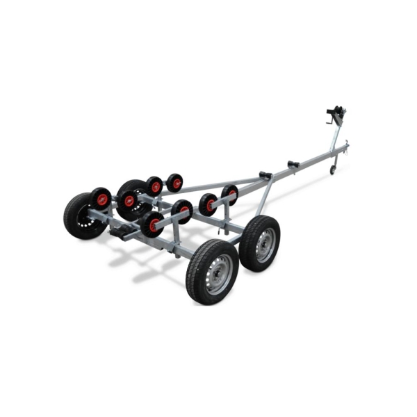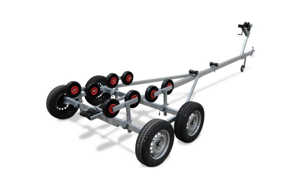 Helsveiset og varmgalvanisert. To akslet for å få god vektfordeling på opplagshengeren. Kjølruller med stålkjerne, kraftig vinsj. Fire støttehjul på hver side. Kan påmonteres lengre sidestøtter (70cm) dersom det er behov.