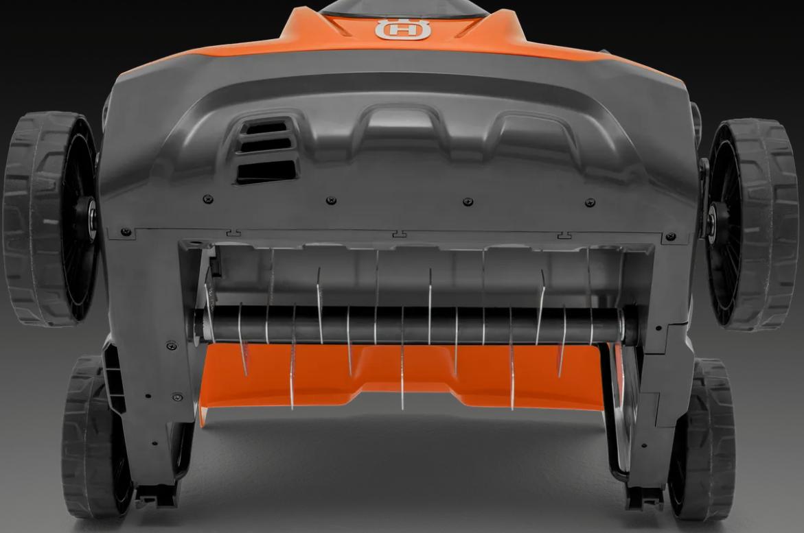 En lett vertikalskjærer med ledning, 2-i-1-funksjon og enkelt bladskifte. Den lett justerbare arbeidsdybden, sammen med en kraftfull motor, gjør at du enkelt kan fjerne gressfilt og mose fra plenen. 38 cm arbeidsbredde og doble batterispor for lengre driftstid. Den kompakte designen og det nedfellbare håndtaket gjør den enkel å transportere og oppbevare.