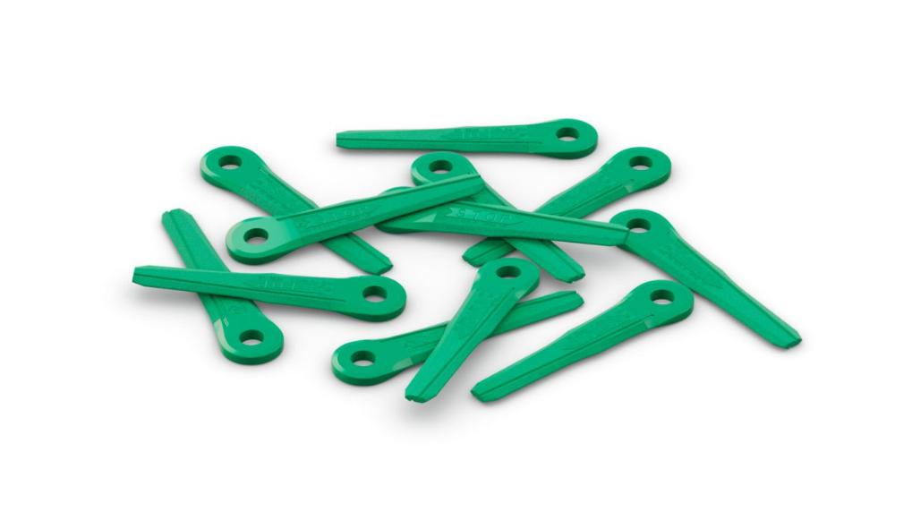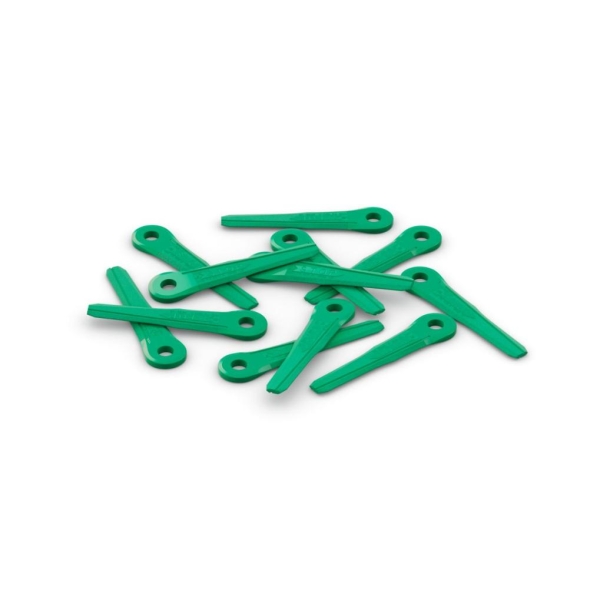 Et sett med 12 grønne plastkniver med mindre skjærediameter for trimmere og buskryddere