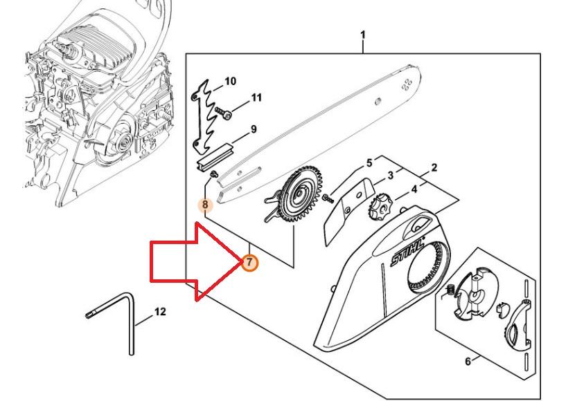 Denne spennskiva brukes til Stihl motorsager med hurtigstramming av kjede. (Se deletegning for å se at det er slik stramming du har på saga di.)