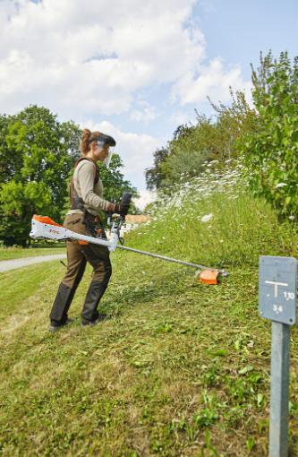 Hvis du er profesjonell innen hagearbeid og landskapsvedlikehold eller jobber i kommunale virksomheter med grønnpleie i støysensitive områder, er batteridrevet motorsag FSA 135 det riktige valget. Med det ergonomiske tohåndsgrepet (slåhåndtak) kan du klippe større gressflater komfortabelt og effektivt.