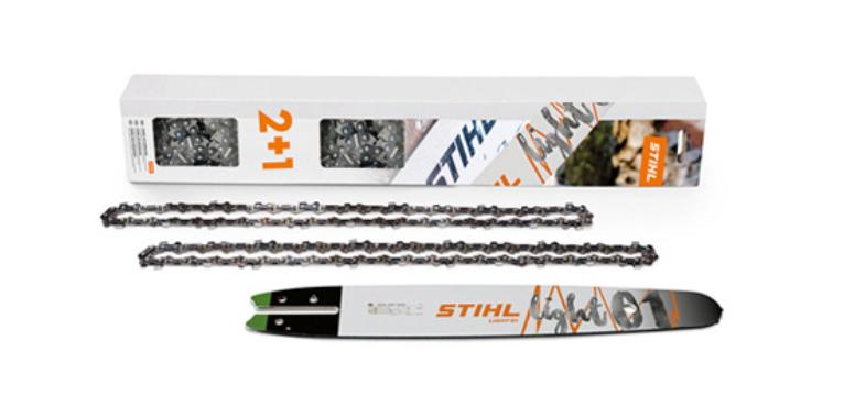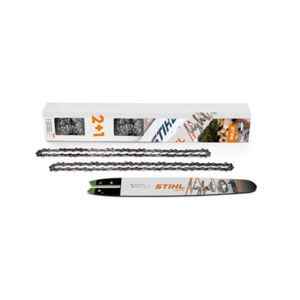 Praktisk pakke til din STIHL motorsag MS 261. Inneholder 2 stk .325″ RS Pro 1,3 mm kjeder med 67 drivlenker og 1 stk Light 04 sverd, 16″/40 cm.