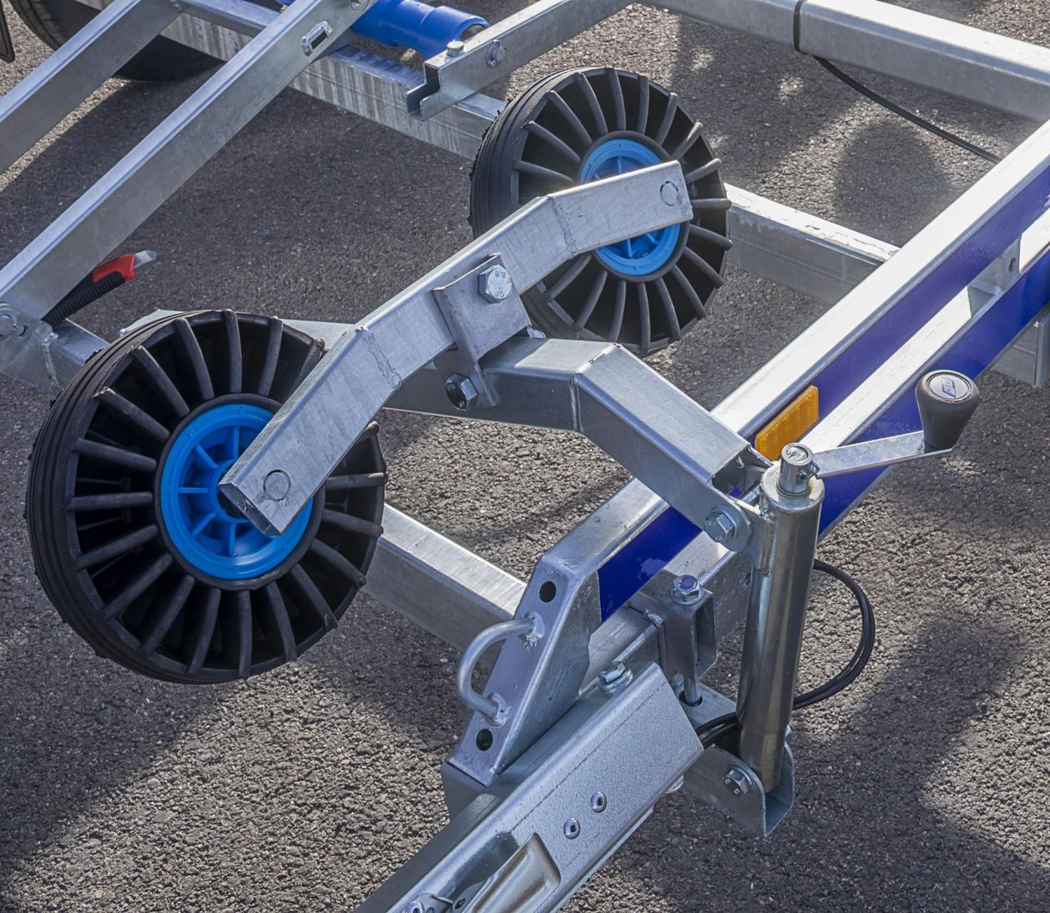 En bremset båthenger for båter opp til 23 fot og nyttelast på 1986kg. Med brems på hengeren er det tillatt å kjøre i opptil 80km/t på veier som har den fartsgrensen eller høyere. Helsveiset og varmgalvanisert dobbel A-ramme av firkantrør gir en stivere og meget solid henger. Manuell justering av sidestøttene gjør at denne hengeren kan tilpasses så å si alt av skrogtyper som finnes på markedet. Vinsjtårnet kan flyttes i hengerens lengderetning, så man kan balansere båten perfekt på tilhengeren. Den er utstyrt med dobbel myk bauggummi som beskytter skroget godt. En anerkjent kraftig Goliath vinsj følger med. Baklyktene er utvippbare med gassdemper som holder de på plass, så det er ingen behov for å ta de av, og fikle med ledninger. Hengeren er utstyrt med LED lys rundt baut, også baklys er LED. Ledningene er skjult i rammen. Stålskjermer som tåler opptil 100kg, gir lettere tilgang til båten når den står på hengeren. Surrefester til stropper er integrert i hengerens ramme, foran- i midten -og bak på hengeren. 14 tommers hjul gjør den fin å kjøre også i ulendt terreng. God kvalitet, enkel i bruk og skånsom mot båten.