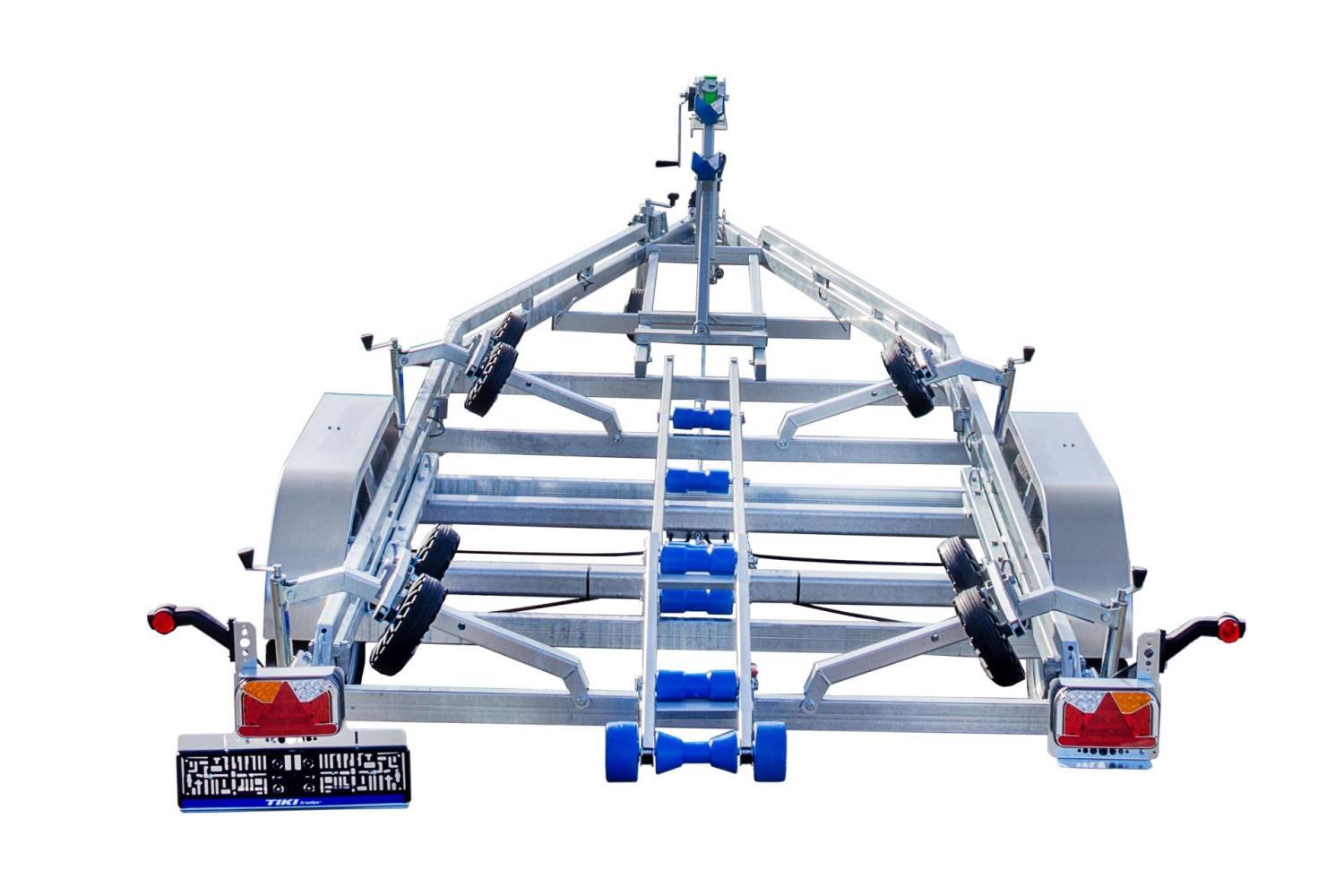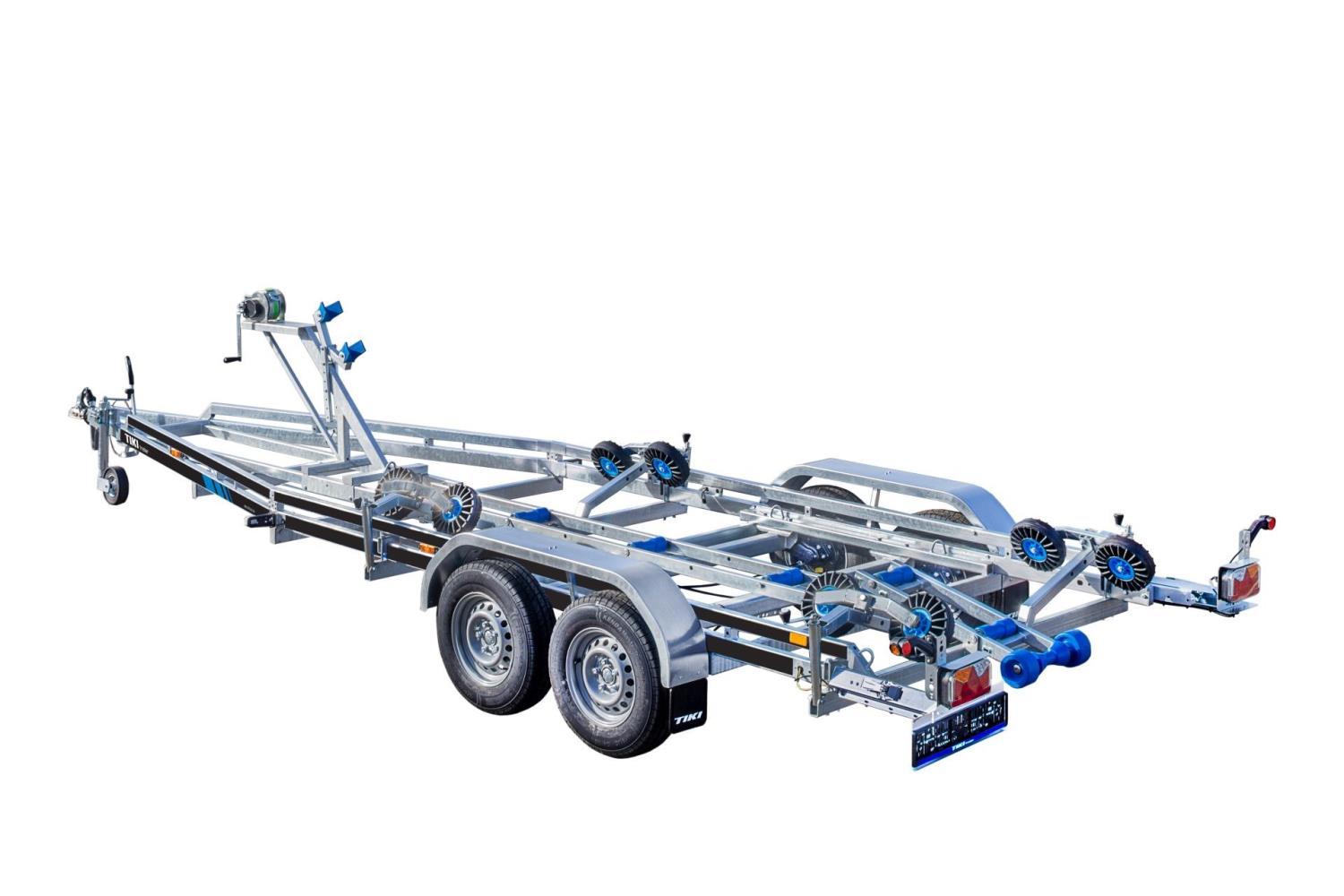 En bremset båthenger for båter opp til 25 fot og nyttelast på 2689kg. Med brems på hengeren er det tillatt å kjøre i opptil 80km/t på veier som har den fartsgrensen eller høyere. Helsveiset og varmgalvanisert dobbel A-ramme av firkantrør gir en stivere og meget solid henger. Manuell justering av sidestøttene gjør at denne hengeren kan tilpasses så å si alt av skrogtyper som finnes på markedet. Vinsjtårnet kan flyttes i hengerens lengderetning, så man kan balansere båten perfekt på tilhengeren. Den er utstyrt med dobbel myk bauggummi som beskytter skroget godt. En anerkjent kraftig Goliath vinsj følger med. Baklyktene er utvippbare med gassdemper som holder de på plass, så det er ingen behov for å ta de av, og fikle med ledninger. Hengeren er utstyrt med LED lys rundt baut, også baklys er LED. Ledningene er skjult i rammen. Stålskjermer som tåler opptil 100kg, gir lettere tilgang til båten når den står på hengeren. Surrefester til stropper er integrert i hengerens ramme, foran- i midten -og bak på hengeren. 14 tommers hjul gjør den fin å kjøre også i ulendt terreng. God kvalitet, enkel i bruk og skånsom mot båten. NB! Avbildet modell er BP2600-DRB/Manuell. BP3500-DRB/Manuell er noe lengre.