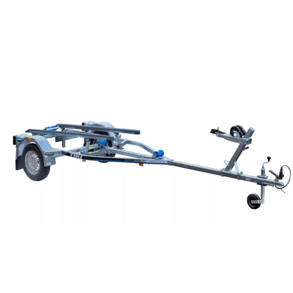 Rammen med forlengede sidebjelker øker stabiliteten og sikkerheten under kjøring. Den justerbare trekkstangen gjør at hengeren kan justeres etter båtens lengde og tyngdepunkt. På vinsjtårnet er det mulig å justere høyden på vinsjen og nesestøtten, samt vinkelen i forhold til bakken. En vinsj med brems sørger for komfortabel og sikker drift. Støttehjulet støttes fra to punkter for tryggere og mer praktisk forflytning av båten uten tauekjøretøy. Vanntette nav sikrer lengre levetid for hjullagrene. Tilhengerrammen er utstyrt med store, sterke surrekroker for å feste båten sikkert. Justerbare sidestøtter og en vippemekanisme styrer båten mot hengeren. Step-on-fendere og step-on-bord i metall gir bedre tilgang til båten på hengeren. Baklyktene er festet til tilhengerens skjermer. Takket være dette kan tilhengeren betjenes uten å flytte lysene.