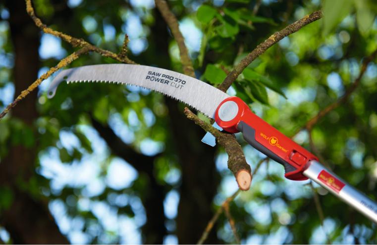 – Sag med integrert grenkrok og barkkutter