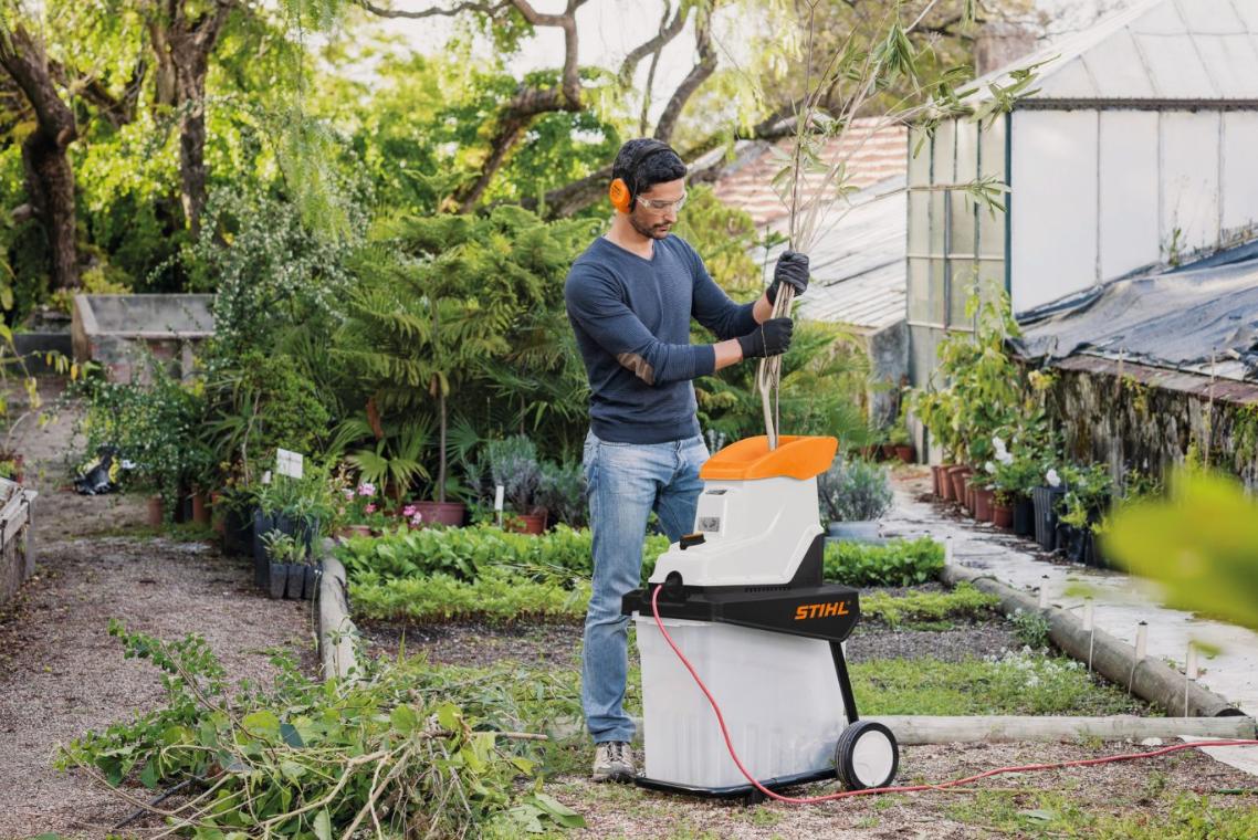 GHE 140 L er en sterk elektrisk kompostkvern på 2.500 Watt som rolig, støysvakt og kraftfullt bearbeider kvister og grener med diameter på opptil 40 mm. Kvistmaterialet trekkes langsomt gjennom kuttevalsen, finkuttes optimalt og havner til slutt direkte i den integrerte 60-liters store kompostbeholderen.