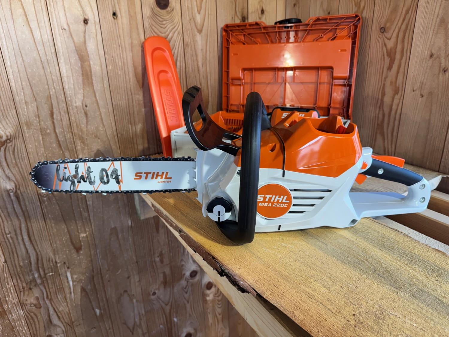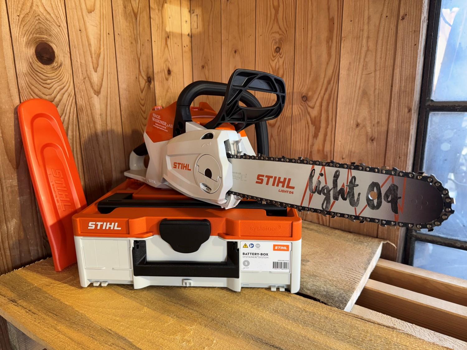 24/7 selvbetjent utleie av Stihl MSA 220 batteridrevet motorsag.